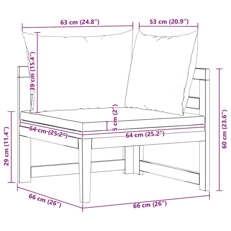 Насладете се на комфортно време за отдих във вашето външно пространство с приятелите или семейството си на този дървен ъглов диван! Този градински ъглов диван е изработен от масивно акациево дърво – твърда дървесина с плътни шарки. Този красиво проектиран градински ъглов диван е стабилен, издръжлив и впечатляващ. В допълнение, изящната изработка и красивите дървесни шарки правят всяка мебел малко по-различна от останалите. Включените възглавници допринасят за допълнителния комфорт по време на почивка. Забележка: За да удължите живота на вашите градински мебели, препоръчваме ви да ги почиствате редовно и да не ги оставяте ненужно на открито без защита.Почистване: Използвайте мек сапунен разтвор.Съхранение: Ако е възможно, съхранявайте на хладно и сухо място на закрито. Ако продуктът се съхранява на открито, защитете го с водоустойчиво покривало. Избършете и изсушете излишната вода или сняг от плоските повърхности след дъжд или снеговалеж. Позволете достатъчно циркулация на въздуха, за да избегнете повреди, свързани с влагата.
