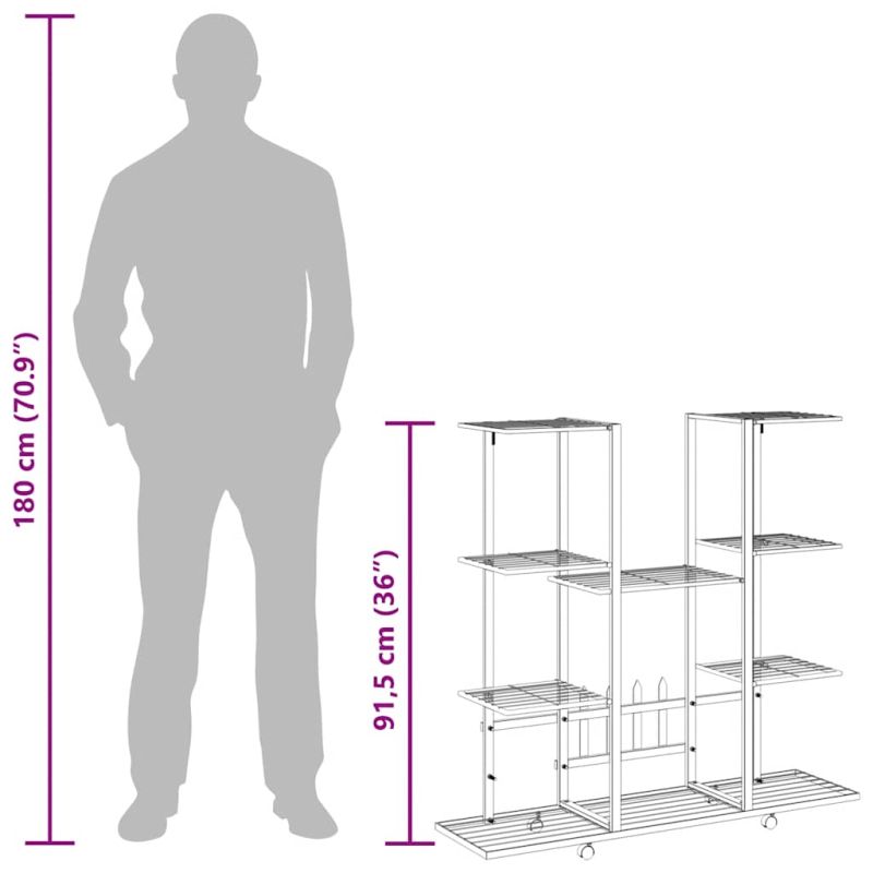 Тази стойка за цветя е идеално решение за съхранение и нареждане на вашите растения и различни други предмети. Първокласен материал: Този рафт за растения е изработен от желязо, което е издръжливо и не изисква поддръжка, гарантиращо години на експлоатация. Здрава и стабилна рамка: Металната рамка на стойката за цветя гарантира здравина и стабилност.Полезна етажерка: Поставката за растения осигурява просторно пространство за нареждане на вашите прекрасни растения. Може да служи и като стелаж за витрини, рафт за съхранение и др.Гъвкав дизайн: Лесно се мести, благодарение на колелцата си.