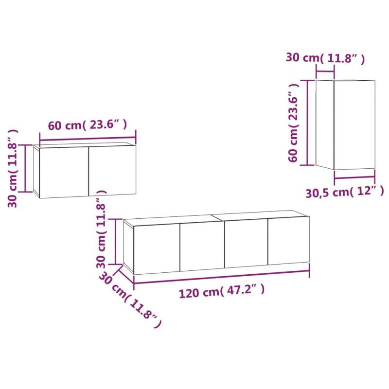 Комплект ТВ шкафове от 4 части, сив сонома, инженерно дърво