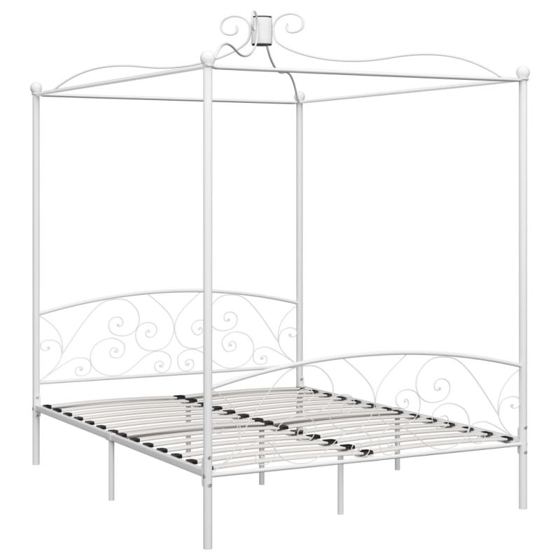 Рамка за легло с балдахин, бяла, метал, 160x200 см