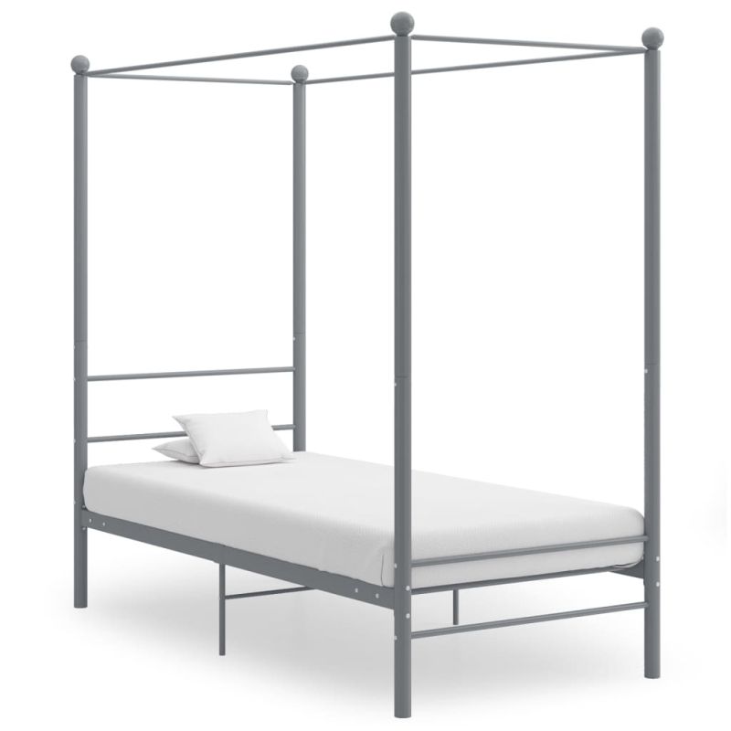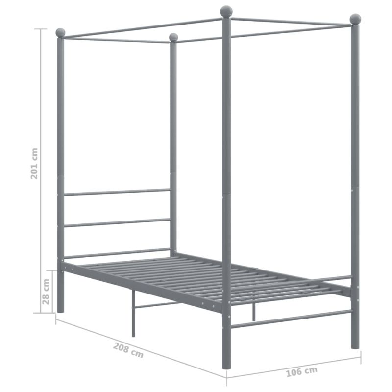 Рамка за легло с балдахин, сива, метал, 90x200 cм