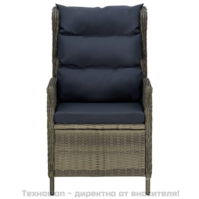 Този удобен накланящ се градински стол е отличен избор за разговори със семейството и приятелите или просто за наслаждаване на успокояващите слънчеви бани във вашето открито жилищно пространство. Градинският реклайнер, разполагащ с прахово боядисана стоманена рамка, покрита с кръгъл РЕ ратан, е здрав и лесен за почистване. Плътно подплатените възглавници доставят допълнителен комфорт по времето на почивката ви. Калъфките на възглавниците, снабдени с цип, се свалят и перат лесно. Благодарение на газовия повдигащ механизъм, облегалката също се регулира до най-удобната ви позиция. С натискане на страничния бутон можете да я свалите, за да се излегнете удобно. Столът е перфектен избор да се отпуснете и поставите краката си на поставката за крака, част от комплекта. Можете да го поставите на предпочитаното от вас място. Важна забележка: Препоръчваме покриването на стола и поставката за крака по време на дъжд, сняг и скреж с цел максимално продължителна употреба. Максимално 110 кг на седалка. Съобразете се с риска от открит огън и други източници на силна топлина в близост до продукта.