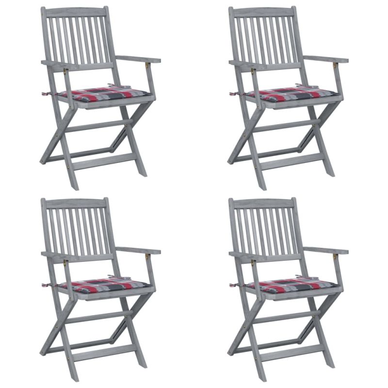 Сгъваеми градински столове, 4 бр, с възглавници, акация масив