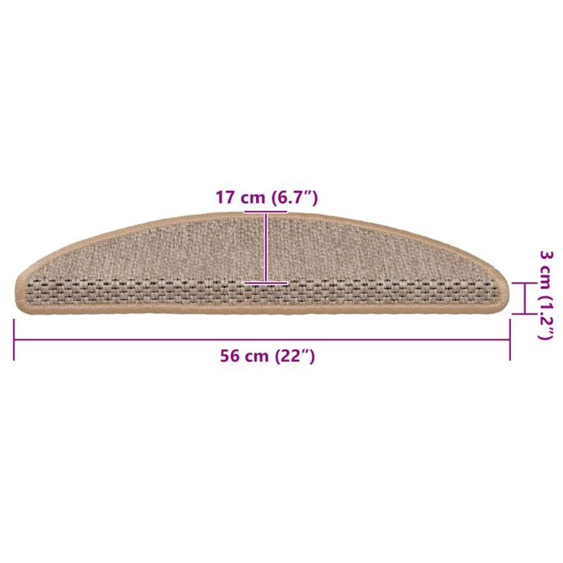 Самозалепващи стелки за стълби сизал 15бр 56x17x3см светлобежов