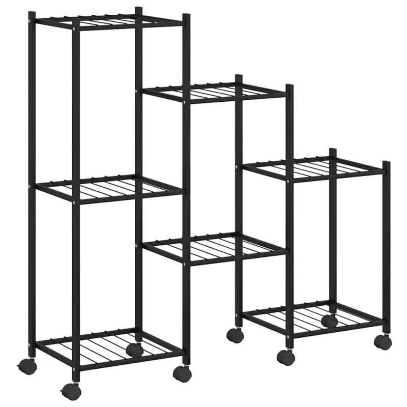 Стойка за цветя на колела 83x25x83,5 см черна желязо