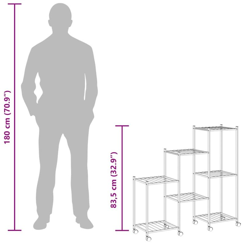 Тази стойка за цветя е идеално решение за съхранение и нареждане на вашите растения и различни други предмети. Първокласен материал: Този ъглов рафт за растения е изработен от желязо, което е издръжливо и не изисква поддръжка, гарантиращо години на експлоатация. Здрава и стабилна рамка: Желязната рамка на стойката за цветя гарантира здравина и стабилност.Полезна етажерка: Поставката за растения осигурява просторно пространство за нареждане на вашите прекрасни растения. Може да служи и като стелаж за витрини, рафт за съхранение и др.Гъвкав дизайн: Лесно се мести, благодарение на колелцата си.