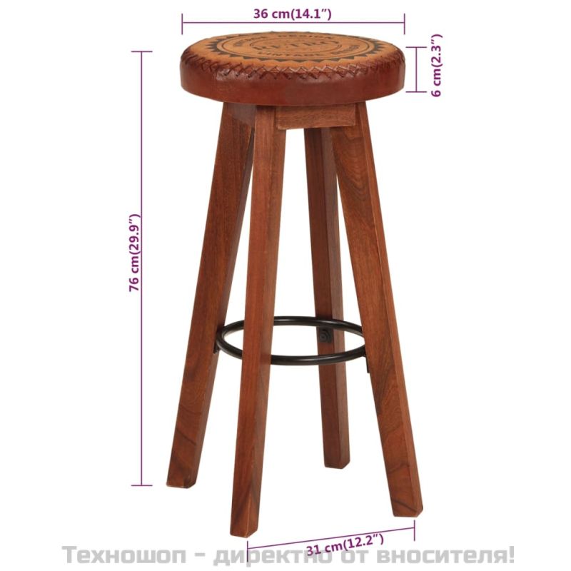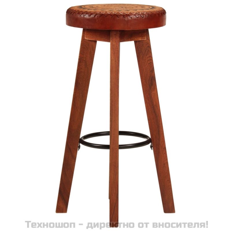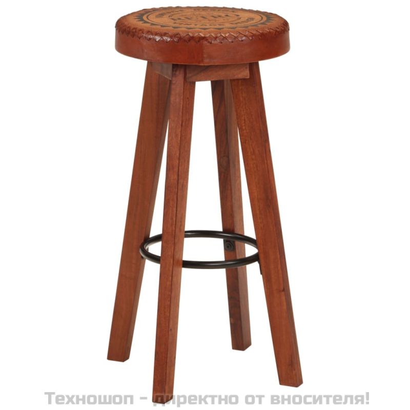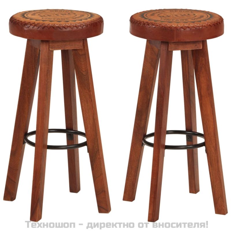 Бар табуретки 2 бр естествена кожа и акациево дърво масив