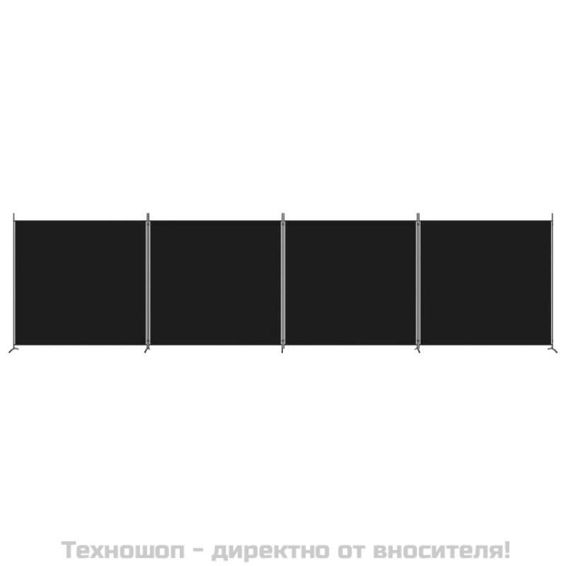 Параван за стая, 4 панела, черен, 698x180 cм, плат