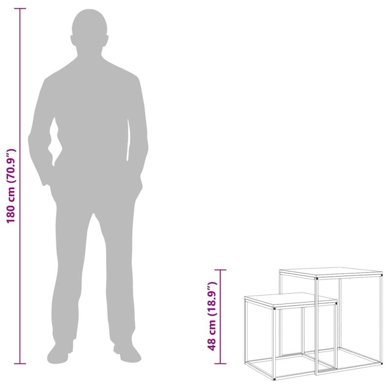 Този комплект отличителни и стилни маси за кафе в два различни размера е предназначен да бъде чудесно допълнение към вашия хол, коридор и т.н. Първокласен материал: Инженерната дървесина е с изключително качество с гладка повърхност и също така се отличава със здравина, стабилност и устойчивост на влага. Изработени от инженерно дърво, плотовете на стифиращите кафе маси са лесни за почистване.Здрава и стабилна конструкция: Желязната рамка на стифиращите маси осигурява здравина и стабилност.Гъвкави стифиращи маси: Комплектът стифиращи маси може да се използва като нощни шкафчета, странични маси, холни маси и др. Можете да ги използвате отделно или да ги подредите заедно, за да спестите място за съхранение.