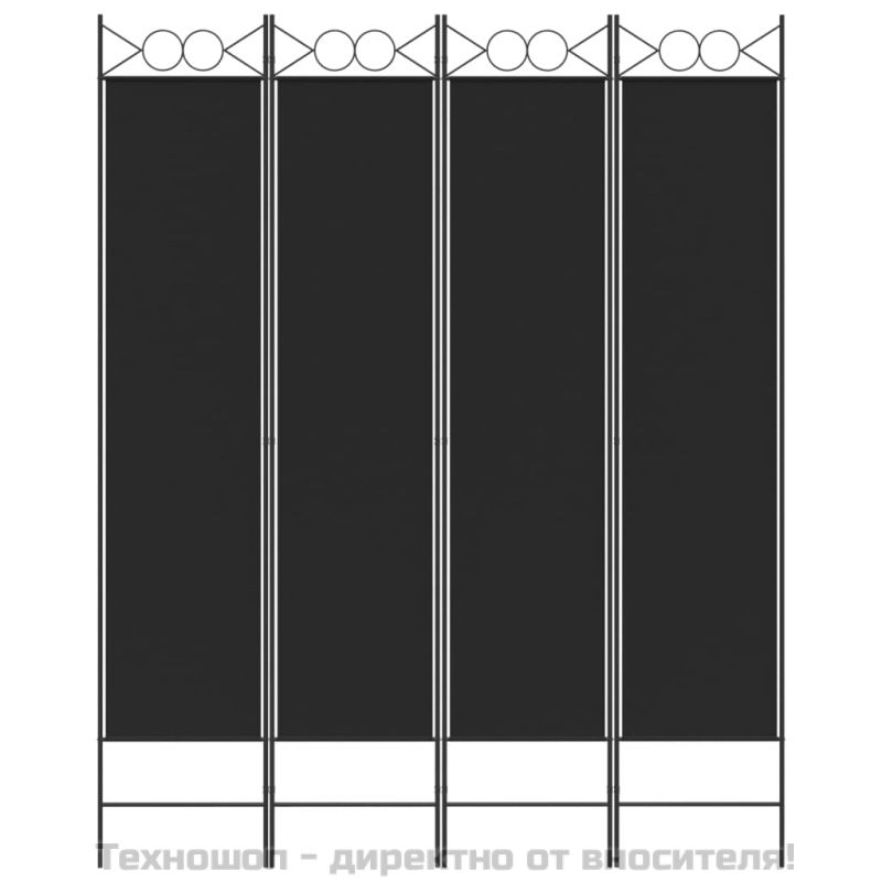 Параван за стая, 4 панела, черен, 160x200 см, плат