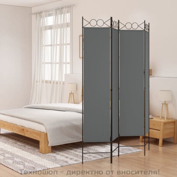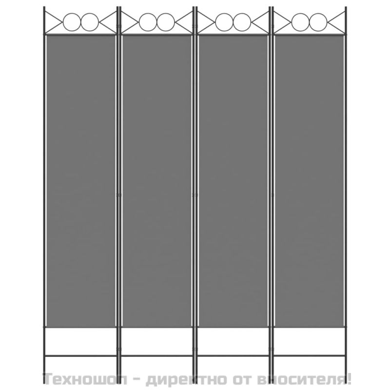 Параван за стая, 4 панела, антрацит, 160x200 cм, текстил