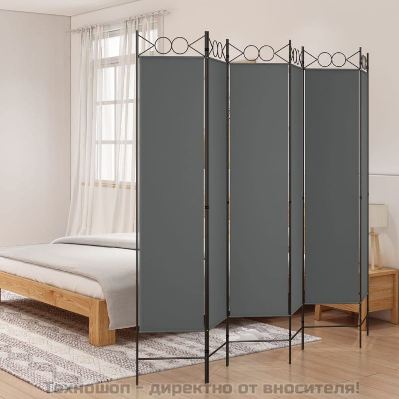 Параван за стая, 6 панела, антрацит, 240x200 cм, текстил