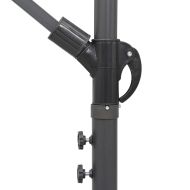 Този елегантен чадър е перфектният избор за създаване на сянка и предпазване от вредните UV лъчи на слънцето. Изработено от неизбледняващ полиестер, предпазващ от ултравиолетовите лъчи, покривалото на чадъра осигурява оптимална защита срещу слънцето и се почиства лесно. Той разполага с кръстата основа за допълнителна стабилност. Изключителният дизайн на този чадър ви предоставя екстра голямо пространство, защитено от слънчевите лъчи. Здравият алуминиев стълб, заедно с 16-те здрави ребра, правят чадъра много стабилен и издръжлив. Градинският чадър се отваря и затваря лесно благодарение на манивелата. Артикулът се сглобява лесно. Моля, забележете, че препоръчваме обработката на текстила на чадъра с хидроизолационен спрей, ако е подложен на силни валежи.
