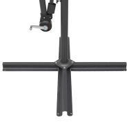 Този елегантен чадър е перфектният избор за създаване на сянка и предпазване от вредните UV лъчи на слънцето. Изработено от неизбледняващ полиестер, предпазващ от ултравиолетовите лъчи, покривалото на чадъра осигурява оптимална защита срещу слънцето и се почиства лесно. Той разполага с кръстата основа за допълнителна стабилност. Изключителният дизайн на този чадър ви предоставя екстра голямо пространство, защитено от слънчевите лъчи. Здравият алуминиев стълб, заедно с 16-те здрави ребра, правят чадъра много стабилен и издръжлив. Градинският чадър се отваря и затваря лесно благодарение на манивелата. Артикулът се сглобява лесно. Моля, забележете, че препоръчваме обработката на текстила на чадъра с хидроизолационен спрей, ако е подложен на силни валежи.
