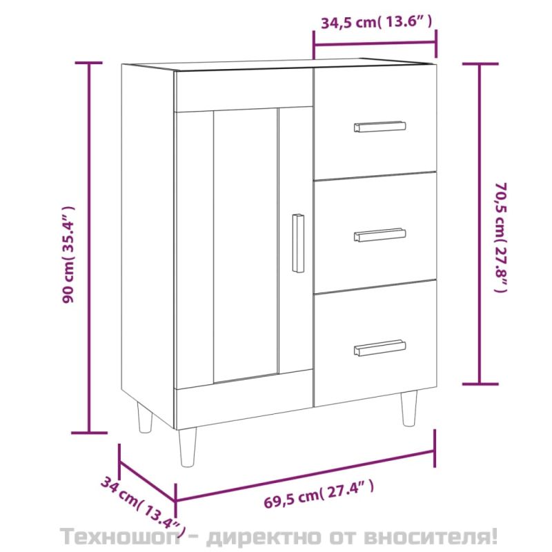 817335 Сайдборд, Кафяв дъб, 69,5x34x90 см, инженерно дърво