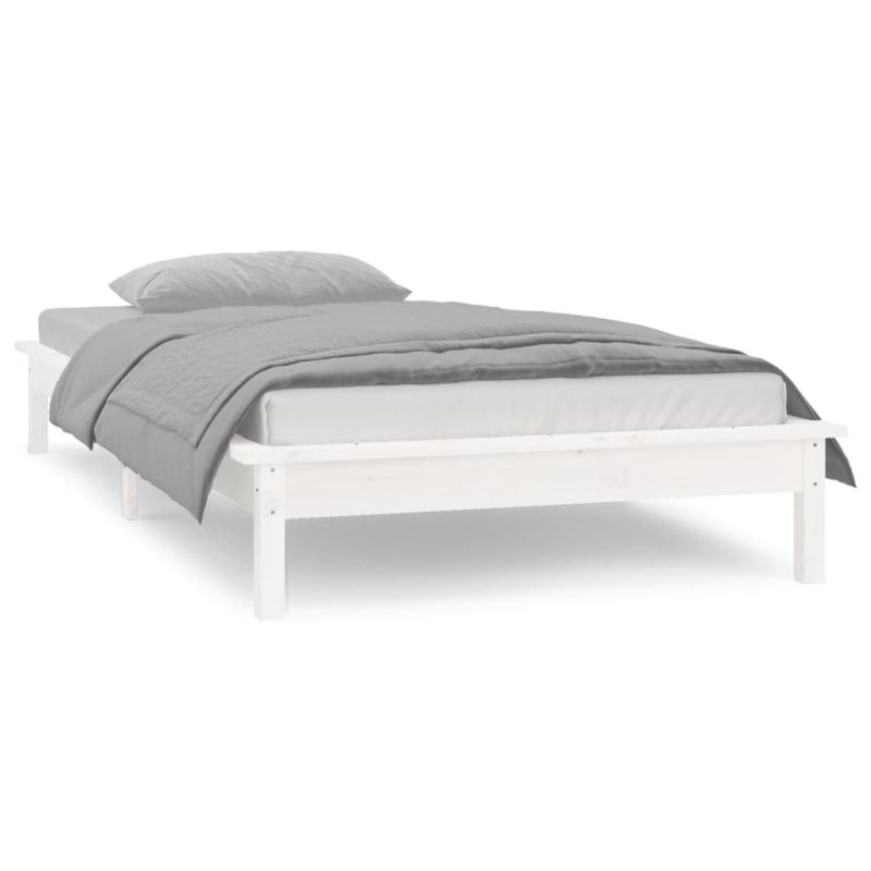 LED рамка за легло бяло 75x190 см Small Single дърво масив