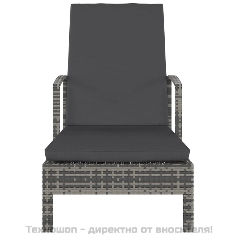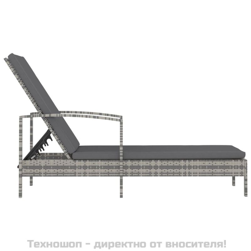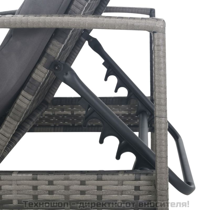 Шезлонг с подлакътници, полиратан, сив