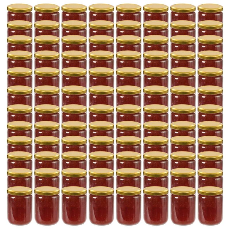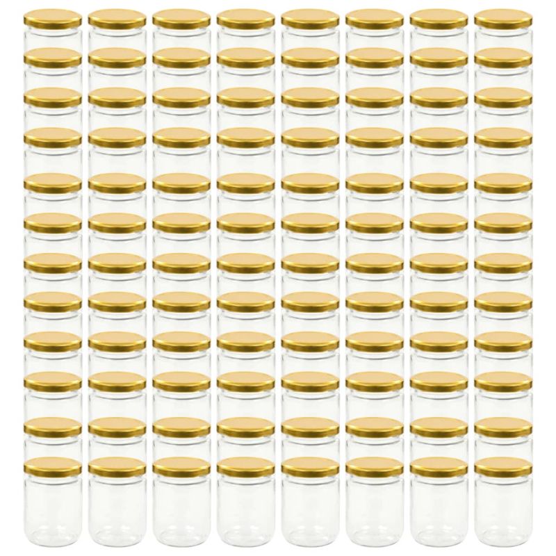 Стъклени буркани за сладко със златисти капачки, 96 бр, 230 мл