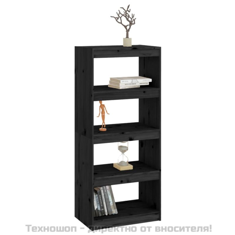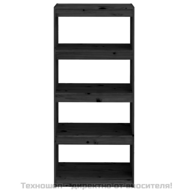 Библиотека/разделител за стая, черна, 60x30x135,5 см, бор масив