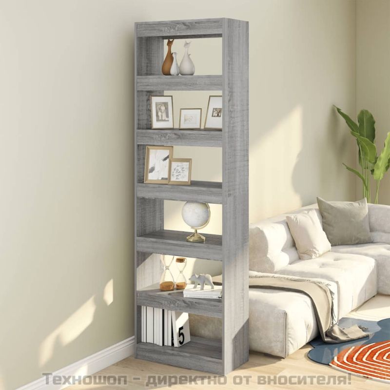 Библиотека/разделител за стая, сив сонома, 60x30x198 см