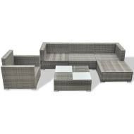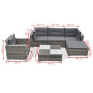 Градински комплект с възглавници, 6 части, полиратан, сив