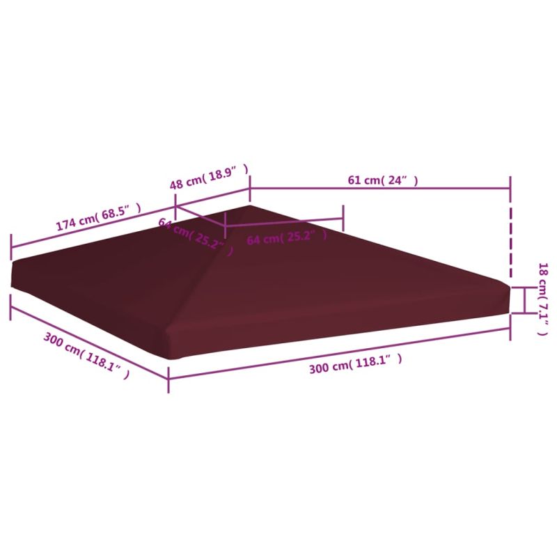 Покрив за шатра, 310 г/м², 3x3 м, бордо