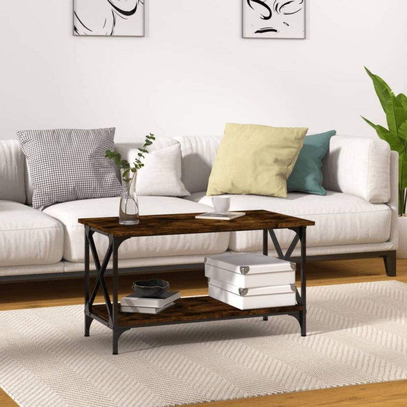 Добавете нотка елегантност към вашия хол с тази класическа масичка за кафе. Издържлив материал: Инженерната дървесина е с изключително качество с гладка повърхност и също така се отличава със здравина, стабилност и устойчивост на влага.Практичен плот: Практичният плот на страничната масичка е идеален и за поставяне на вашите напитки, храна и други декоративни елементи. Отвореният рафт също помага да поддържате ежедневните си неща добре организирани.Стабилна желязна рамка: Желязната рамка на масата за хол осигурява здравина и стабилност. Забележка:Всеки продукт се доставя с ръководство за сглобяване в кашона за лесно сглобяване.