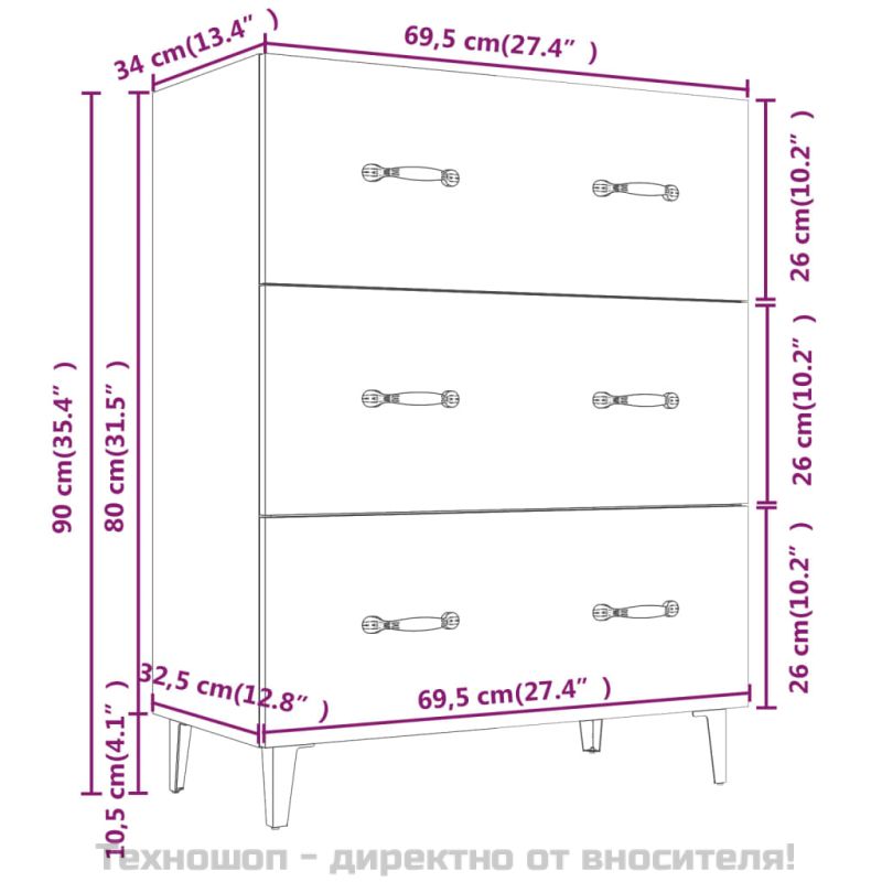 Този класически бюфет е предназначен да направи декоративно и практично допълнение към вашия дом. Първокласен материал: Инженерната дървесина е с изключително качество с гладка повърхност и също така се отличава със здравина, стабилност и устойчивост на влага.Просторно място за съхранение: Страничният шкаф има 3 чекмеджета, осигуряващи достатъчно място за съхранение, където да поддържате различните си вещи за ежедневието добре подредени и лесно достъпни. Горната част на този шкаф е чудесна за излагане на декоративни предмети.Лесно почистване: Този шкаф за съхранение се почиства лесно с влажна кърпа.Стилен дизайн: Този бюфет се отличава със стилен дизайн, който ще внесе излъчване на уникален чар в настоящия ви декор! Внимание:За да се предотврати преобръщане, този продукт трябва да се използва с предоставената приставка за стена.