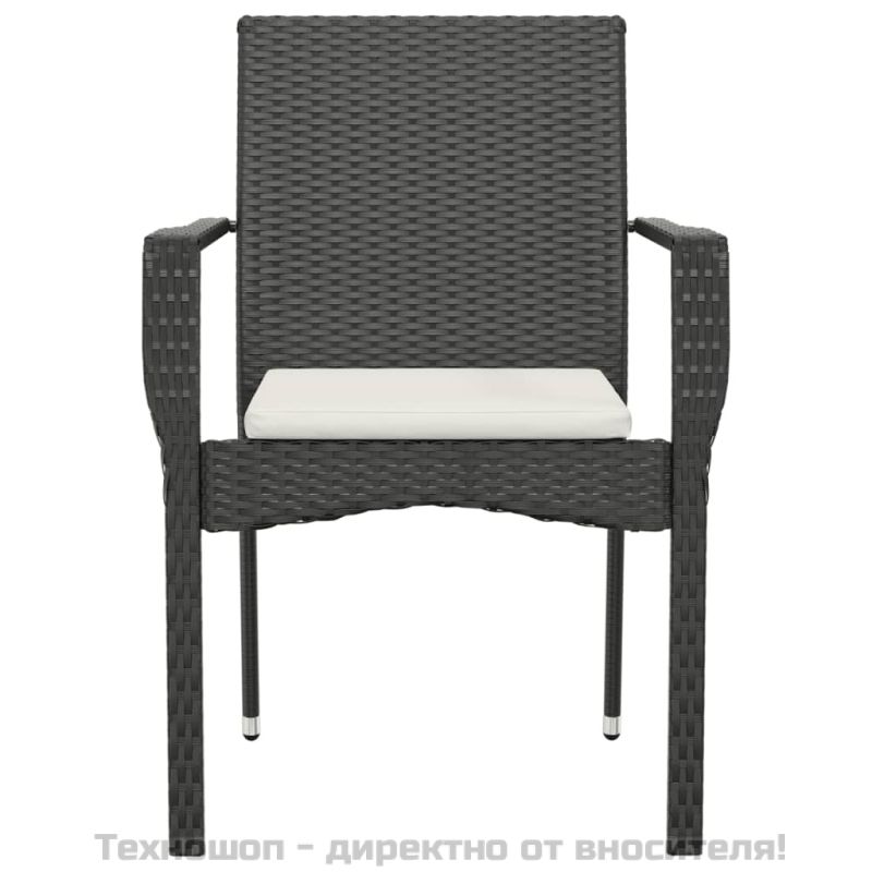 Градински столове с възглавници, 4 бр, полиратан, черни