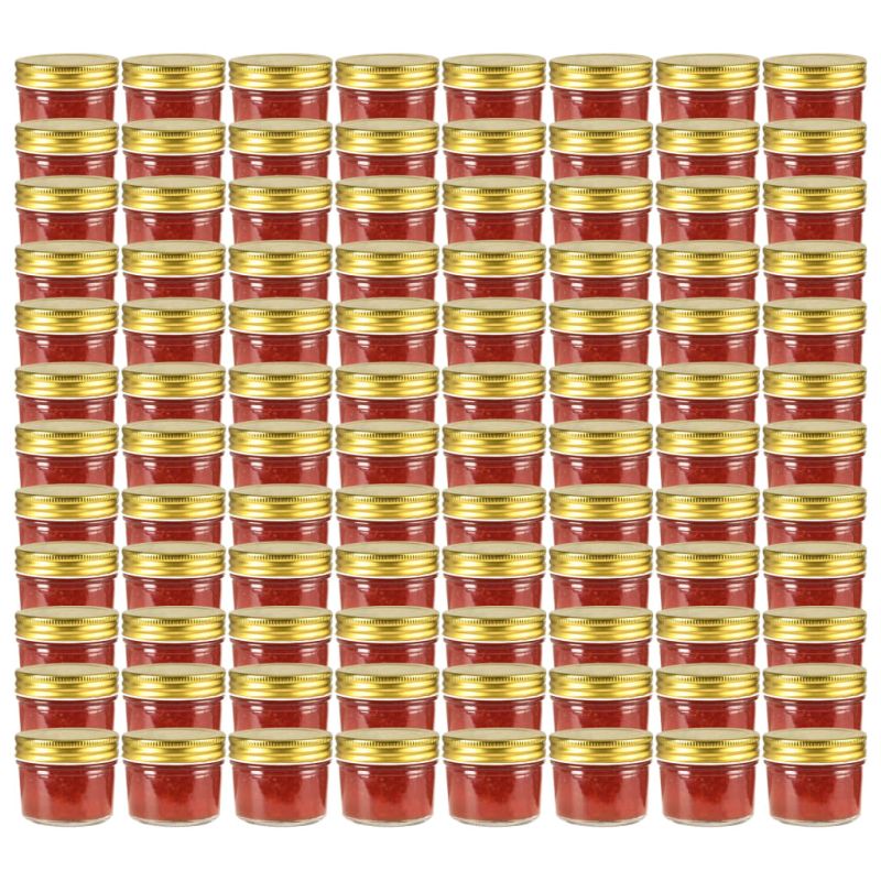 Стъклени буркани за сладко със златисти капачки, 96 бр, 110 мл