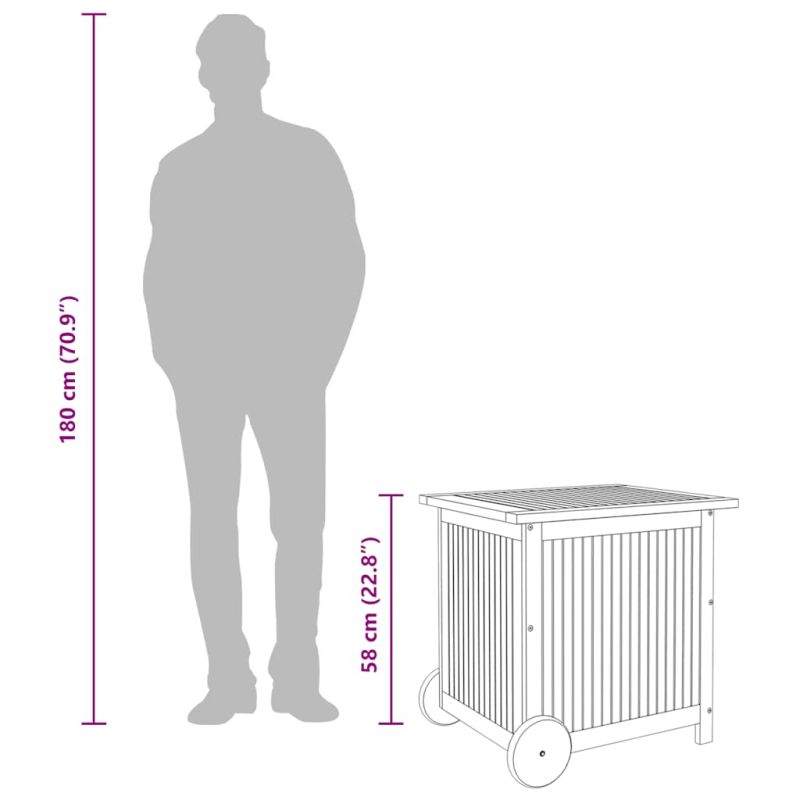 Градинска кутия за съхранение с колела 60x50x58 см акация масив