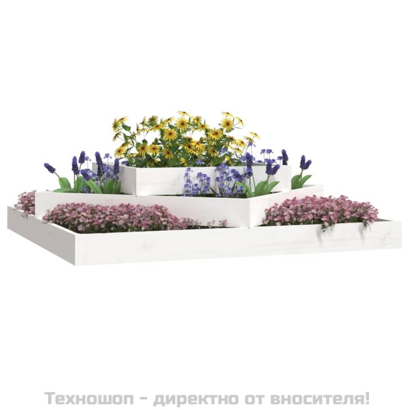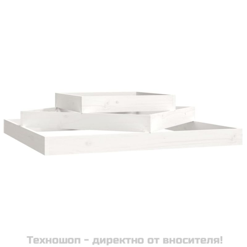 Плантер, бяла, 112x112x27 см, борово дърво масив
