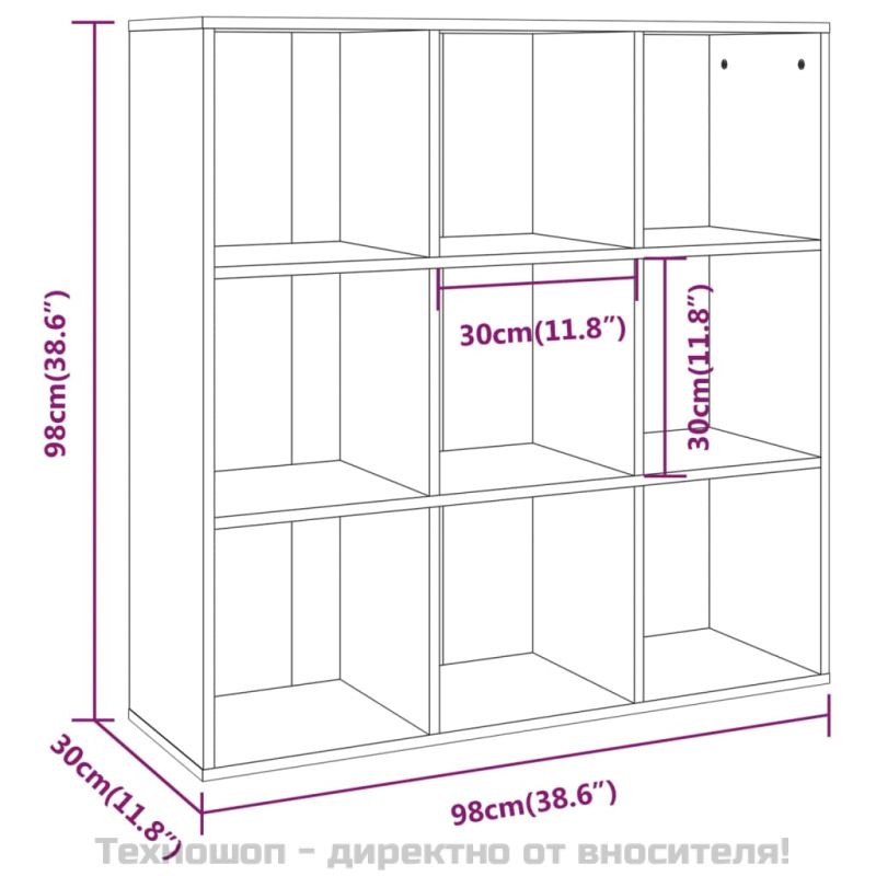 Тази модерна библиотека, отличаваща се с елегантен и класически дизайн, е идеално декоративно и същевременно практично допълнение към вашия дом. Първокласен материал: Инженерната дървесина е с изключително качество с гладка повърхност и също така се отличава със здравина, стабилност и устойчивост на влага.Просторно място за съхранение: Етажерката за книги е проектирана с 9 отделения, предлагащи достатъчно място за съхранение за вашите списания, книги, DVD дискове, мултимедийни устройства и други декоративни предмети, добре организирани и достъпни.Лесно почистване: Рафтът за книги се почиства лесно с влажна кърпа. Внимание:За да се предотврати преобръщане, този продукт трябва да се използва с предоставената приставка за стена.