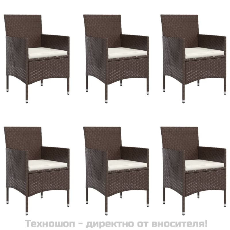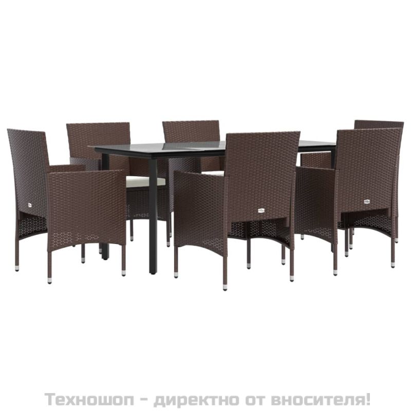 Градински трапезен комплект с възглавници 7 части, кафяво/черно
