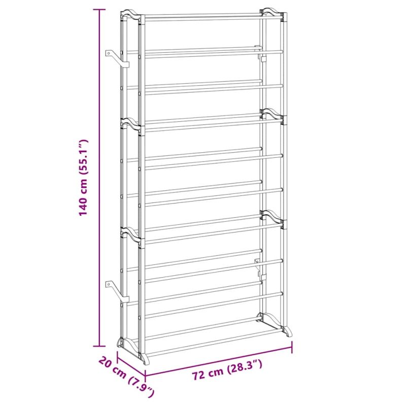 Тези рафтове за обувки са изработени от бяла пластмаса с метални подпори. Подходящи са за 40 чифта обувки. Има 10 "етажа", за да подредите всичките си обувки. Компактният им размер ги прави особено подходящи за малки пространства. Лесни за монтиране, не са ви необходими инструменти.