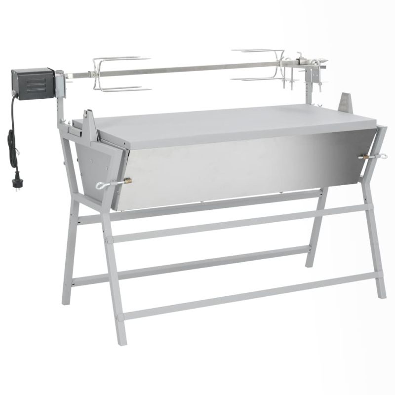 Скарата и шишът са перфектни за печене на месо. Идеални за готвене на големи големи пържоли, ребърца, пилешко и много други! Можете да регулирате дължината и височината на шишовете, за да сте сигурни, че месото няма да изгори. Допълнително предимство е, че шишовете са изработени от неръждаемо желязо и могат да се почистват лесно. Дизайнът на скарата гарантира равномерно разсейване на топлината с минимум дим и пръскане навън. Дъното (корито за капките) може да се сваля и е лесно за почистване. Доставката включва електрически мотор, с който се върти шиша.
