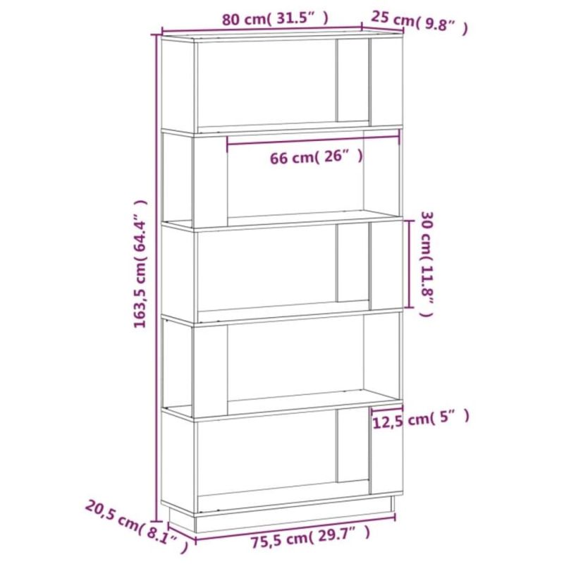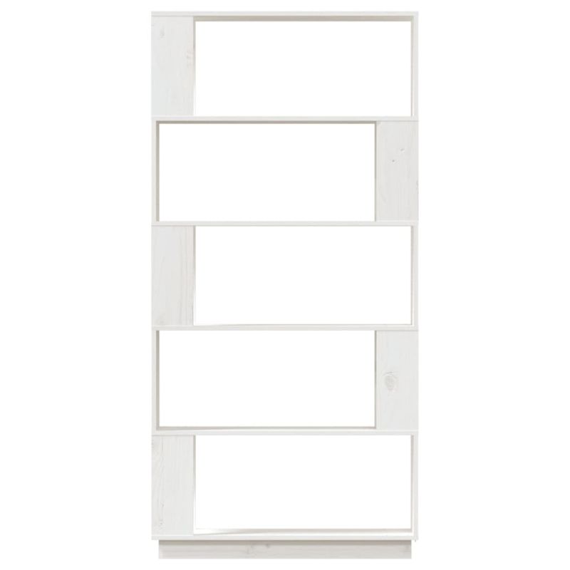 Библиотека/разделител за стая, бяла, 80x25x163,5 см, бор масив