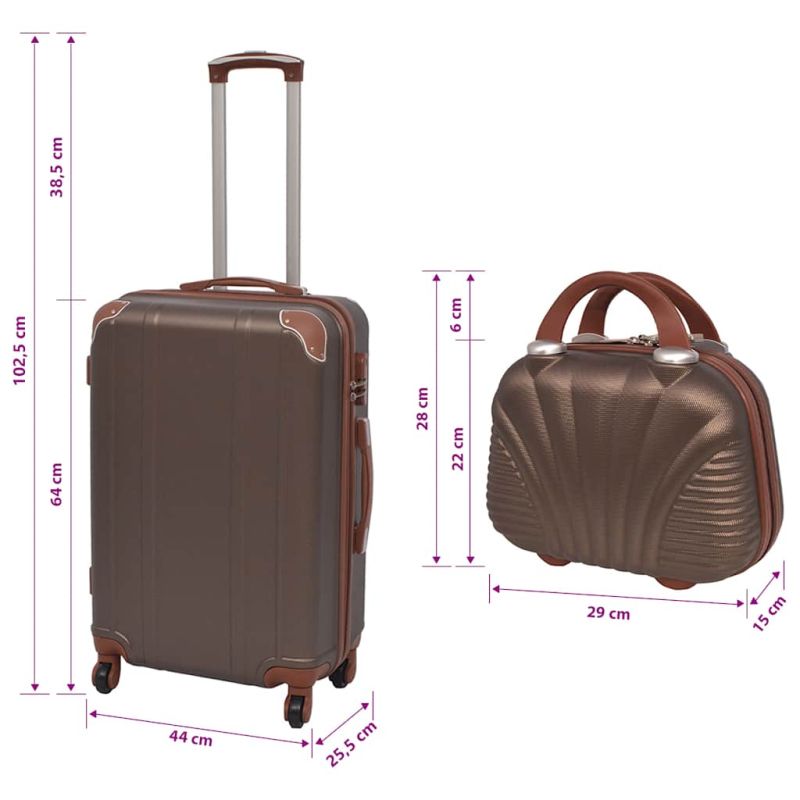 Независимо дали пътувате по работа или почивка, с тази страхотна колекция твърди куфари за пътуване можете да опаковате всичко, от което се нуждаете. Този стилен набор от твърди куфари е изработен с висококачествени, издръжливи твърди черупки от ABS и ключалки, с които поддържате вещите си в безопасност. Куфарите имат вътрешни презрамки за дрехи, които гарантират, че дрехите ви ще останат добре организирани и на място. Освен ергономичната телескопична дръжка, всеки куфар е оборудван и с две дръжки за носене (отгоре и отстрани) и четири колела с 360 градуса въртеливост. Изключително издръжлив и лек, този комплект куфари ще стане чудесен ваш спътник при всяко пътуване. Доставката включва три куфара с различни размери и един чанта за козметика, а по-малките куфари могат да се съхраняват в по-големите, за да се спести място.