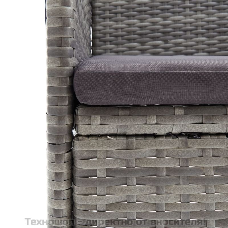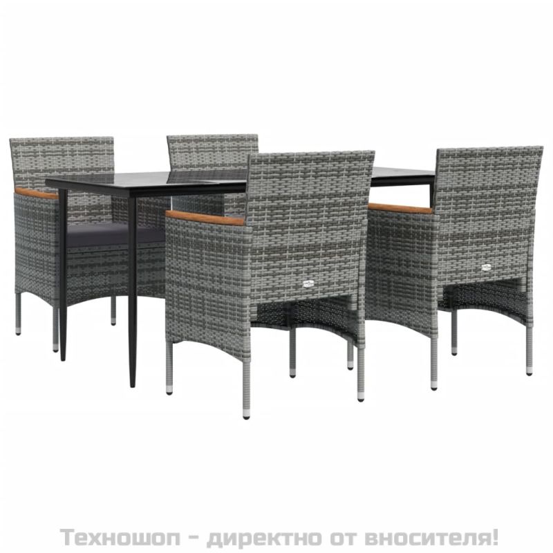 Градински трапезен комплект с възглавници 5 части, сиво и черно