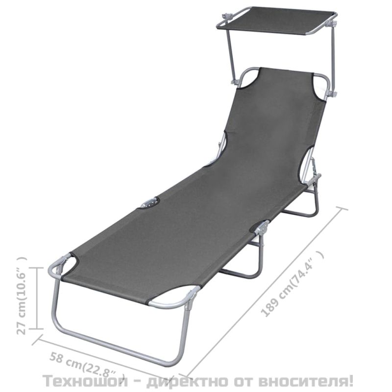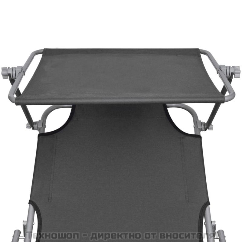 Сгъваем шезлонг със сенник, стомана, сив