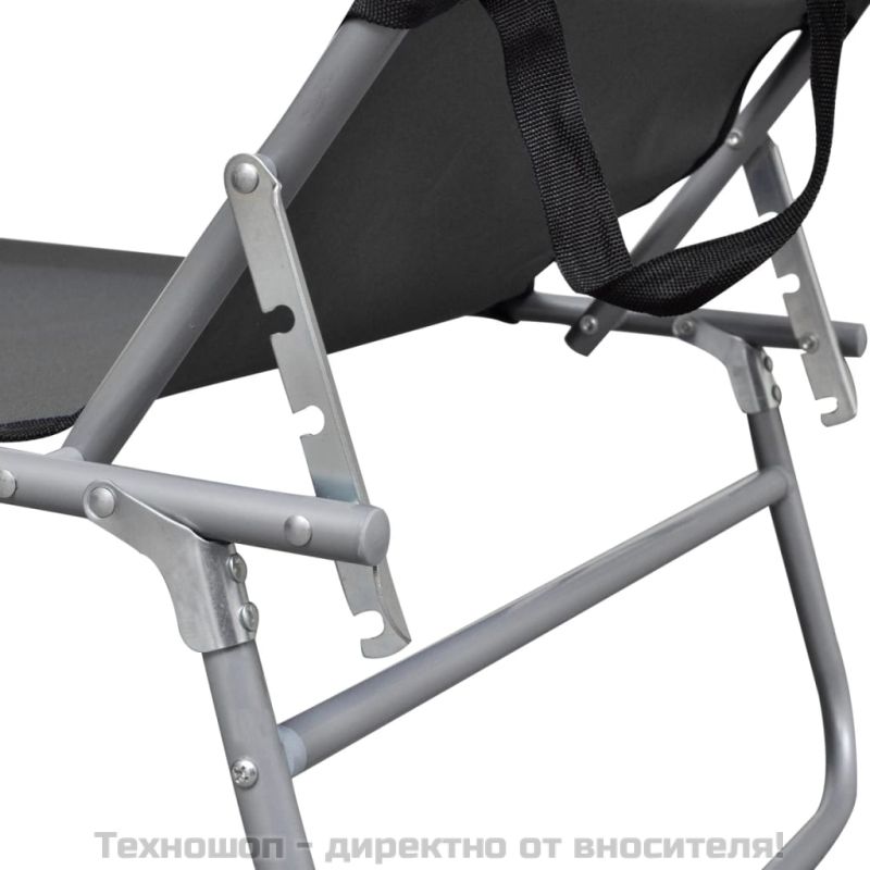 Този висококачествен шезлонг е снабден с регулируем сенник, за да можете да се наслаждавате на слънчеви бани, без да се чувствате притеснени от блясъка на слънцето в очите ви. Облегалката е регулируема, което ви позволява да настроите позицията ѝ. Рамката е изработена от прахово боядисана стомана, която е устойчива на атмосферни влияния, а максималната товароносимост на шезлонга е 110 кг. Благодарение на сгъваемия си дизайн, този шезлонг може да се съхранява лесно, когато не се използва. Той е лек и удобен за пренасяне. Този шезлонг е идеален избор за релакс и наслаждаване на слънчевите дни в градината или на плажа!