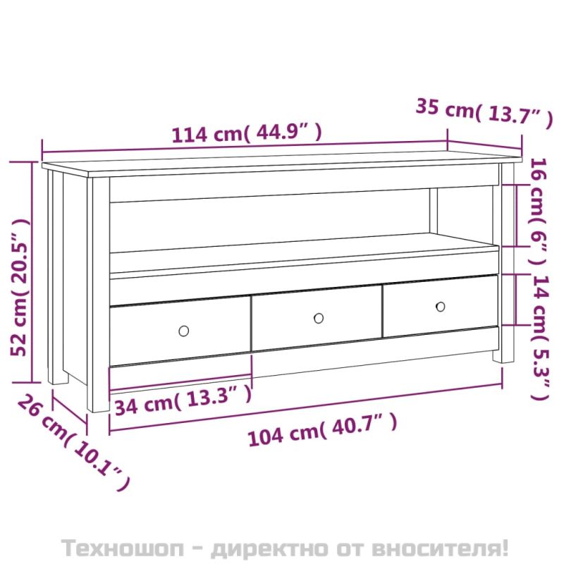 - Купете ТВ шкаф, 114x35x52 см, бор масив или друг продукт от нашата промоционална секция за да получите 3% отстъпка.