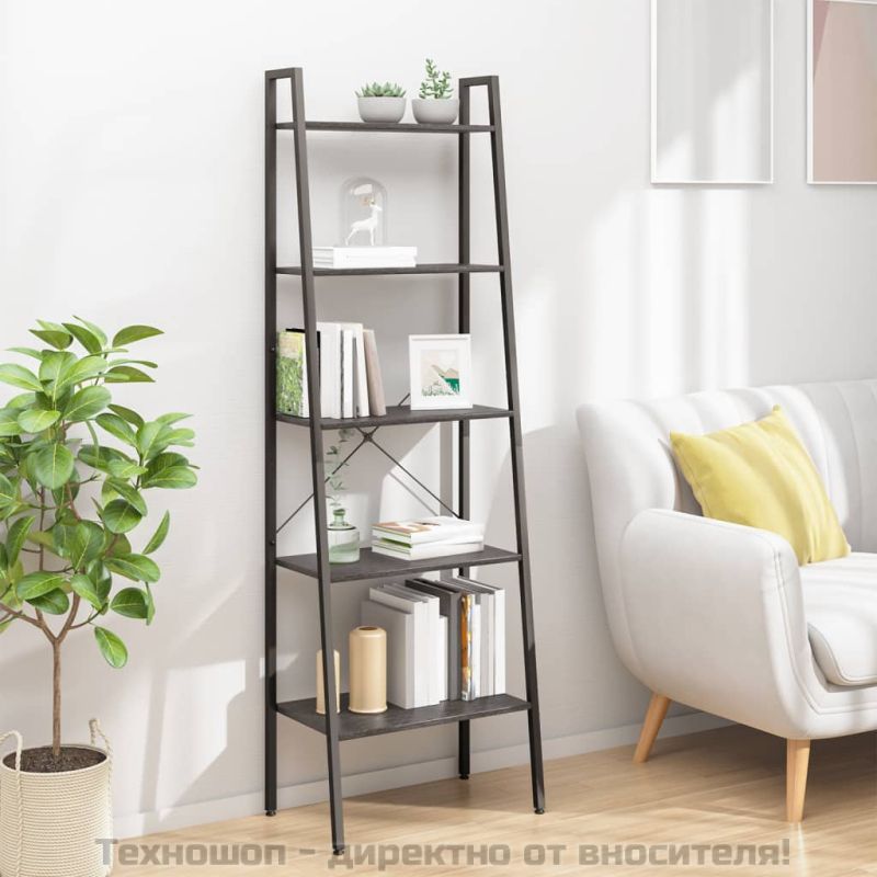 Стояща етажерка стълба 5 рафта черно 56x35x174 см