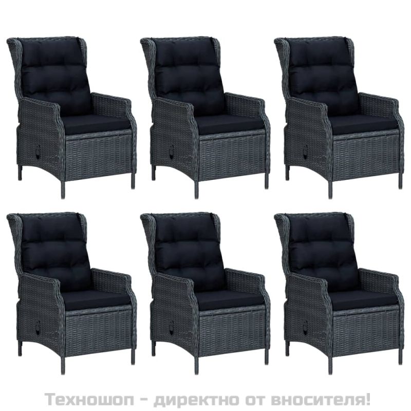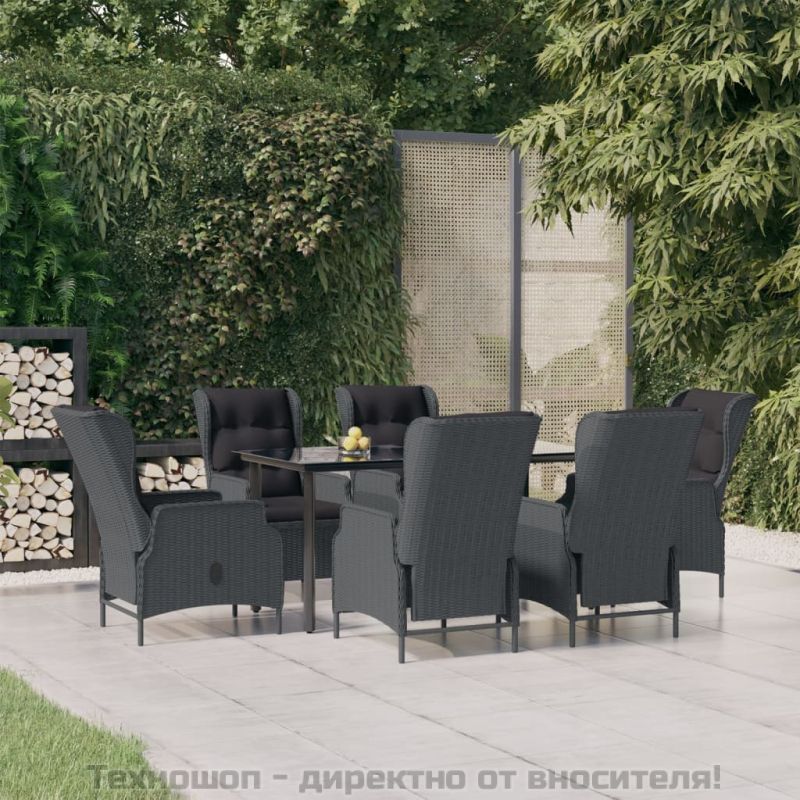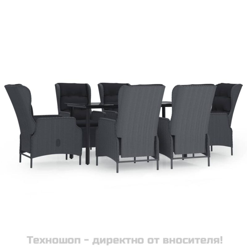 Градински трапезен комплект от 7 части, полиратан, тъмносив