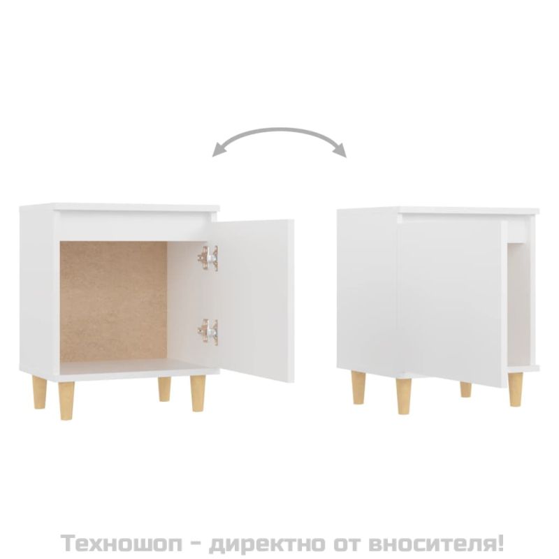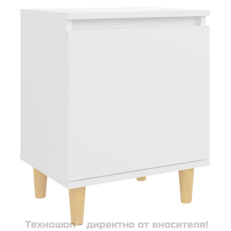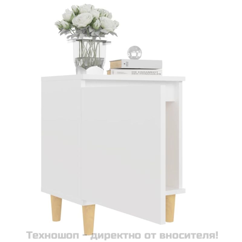 Нощно шкафче с крака от дървен масив, бяло, 40x30x50 см