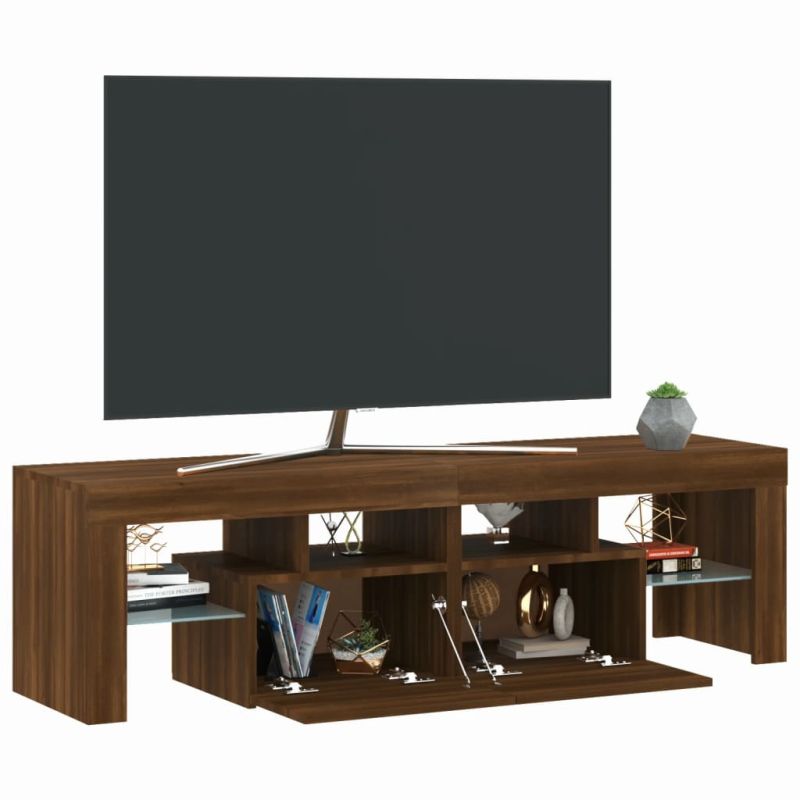 ТВ шкаф с LED осветление, кафяв дъб, 140x36,5x40 см