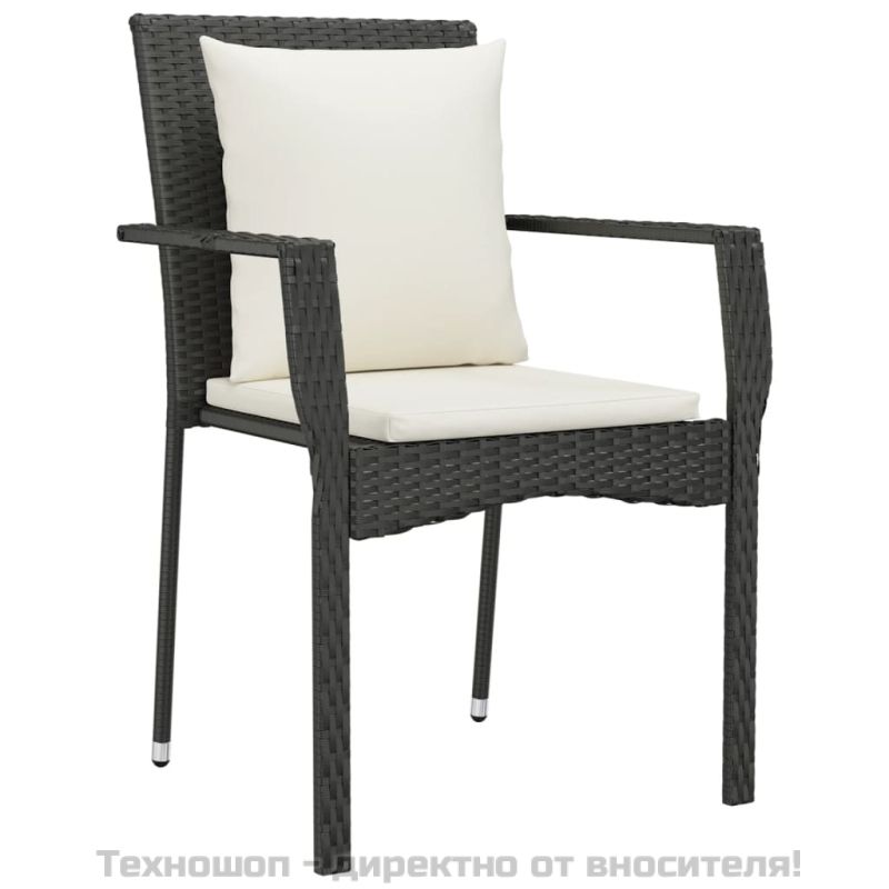 Градински комплект от 3 части с възглавници черни полиратан