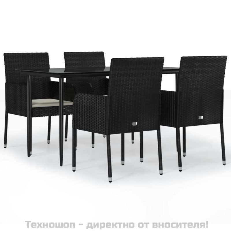 Градински трапезен комплект възглавници 5 части черен полиратан