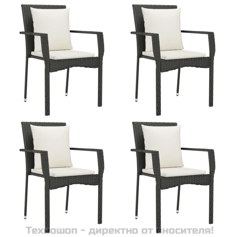Градински трапезен комплект възглавници 5 части черен полиратан