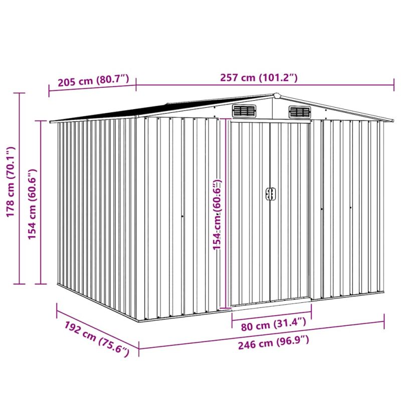 - Купете Градинска барака за съхранение, зелена, метал, 257x205x178 см или друг продукт от нашата промоционална секция за да получите 3% отстъпка.